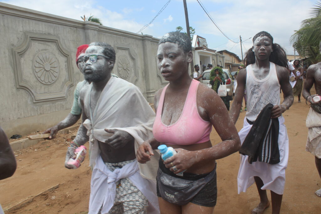 Les rues de la ville ont vécu au rythme de spectacles vivants mêlant danses traditionnelles, chants et percussions. L’écho des tambours enveloppait chaque quartier, donnant à la fête un caractère envoûtant. Au cœur des célébrations, le vodou Lakpan a occupé une place centrale, honoré par des rituels spécifiques et des offrandes.