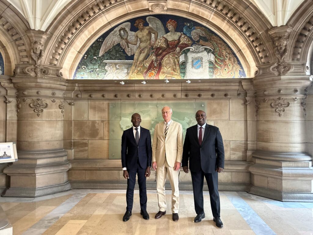 Du 3 au 4 septembre 2025, SEM Aly Touré, Représentant Permanent de la Côte d’Ivoire auprès des Organisations Internationales de Produits de Base à Londres, a séjourné à Brême, en Allemagne, après une visite similaire en Suisse. Cette mission visait à rencontrer les principaux acteurs du secteur cotonnier et textile en Allemagne, dans l’optique de préparer le premier sommet mondial sur l’investissement dans ce secteur, prévu en 2026 à Abidjan.