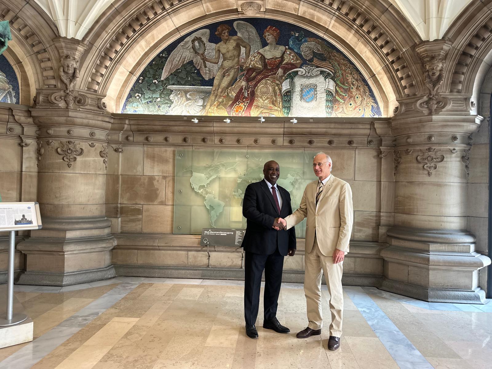 L’objectif de cette visite était double. Il s’agit d’une part, d’informer les partenaires allemands sur l’organisation du sommet à Abidjan, et d’autre part, d’explorer les opportunités de coopération entre la Côte d’Ivoire et l’Allemagne dans le domaine du coton. Il était accompagné de SEM Abdallah Azize Diabaté, Ambassadeur Extraordinaire et Plénipotentiaire de la Côte d’Ivoire en Allemagne, dont l’assistance a été précieuse pour faciliter les échanges.