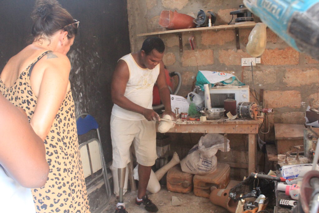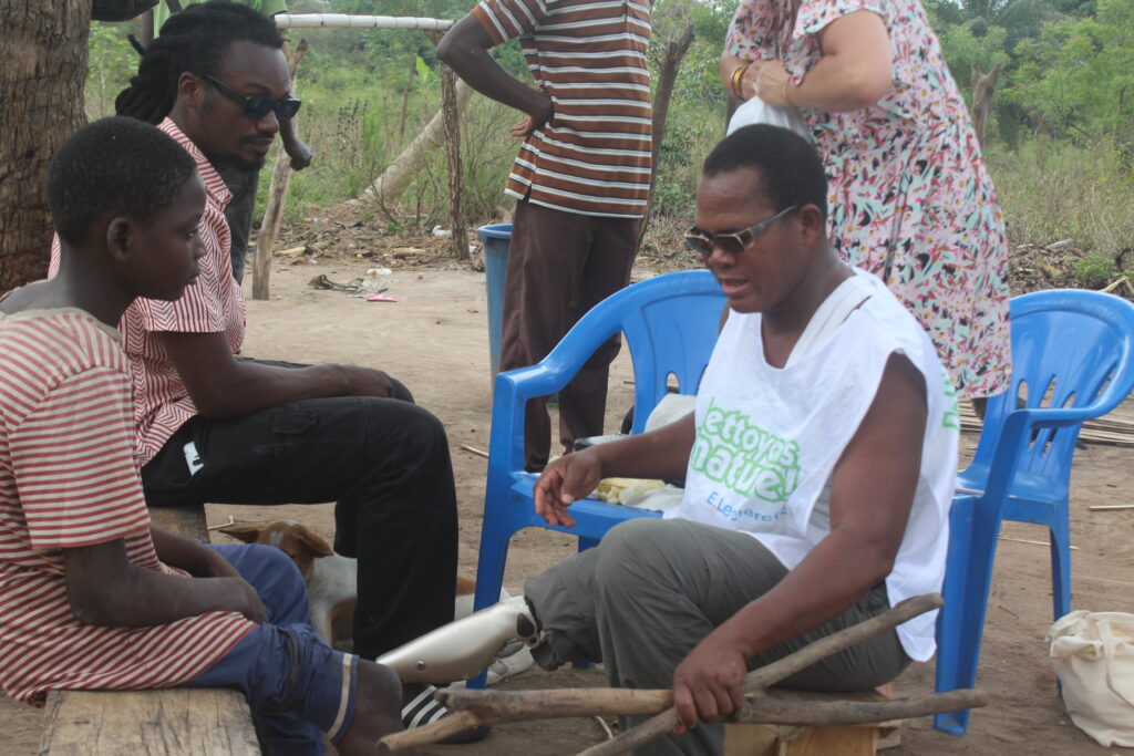 En attendant, la responsable associative a tenu à se déplacer pour remettre au jeune garçon des béquilles adaptées. Jusqu’ici, l’adolescent se déplaçait à l’aide de simples morceaux de bois. Grâce au soutien logistique de La Part du Colibri, la prothèse a déjà été confectionnée dans l’atelier de Daniel Eza, à Akato, dans la périphérie nord-ouest de Lomé.